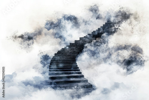 Surreal image of a staircase ascending into mystical clouds, evoking a sense of mystery and wonder.