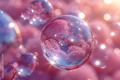 Surreal image of golden bubbles suspended over a pink hexagonal grid, under soft illumination