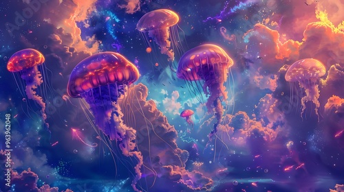Surreal Jellyfish in a Dreamy Sky