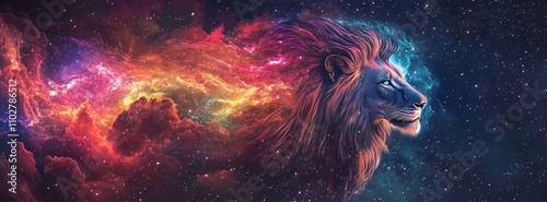 Surreal Lion Against a Flowing Galaxy Background