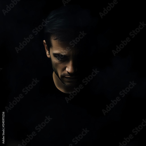 Surreal Portrait of a Distressed Man Dissolving into Dust, Symbolizing Depression and Emotional Pain