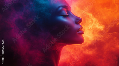 Surreal portrait with a fiery aura symbolizing emotional energy and transformation