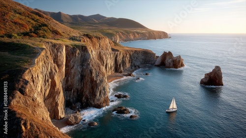 Surrealism Cliff Sunset Perspective Sailboat Colorful