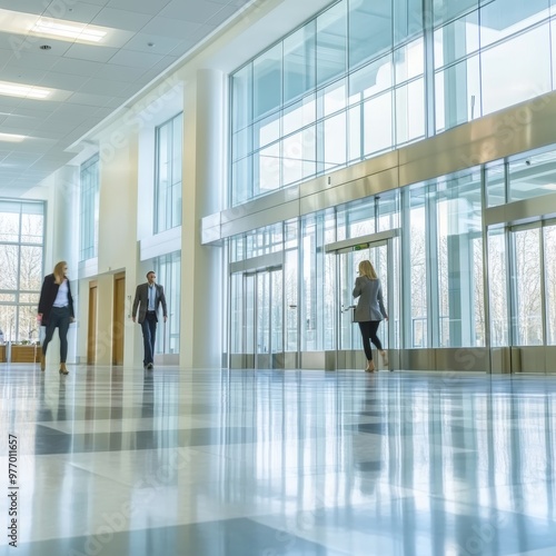 Sustainable Business Hub Professionals On The Move In A Modern, Eco-Friendly Office Building