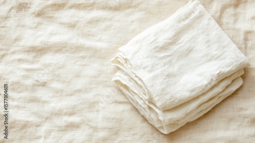 Sustainable fashion concept Folded linen cloth on a textured backdrop, showcasing simplicity and elegance in design.