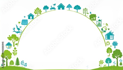 Sustainable living practices eco-friendly community infographic urban environment aerial view green concepts
