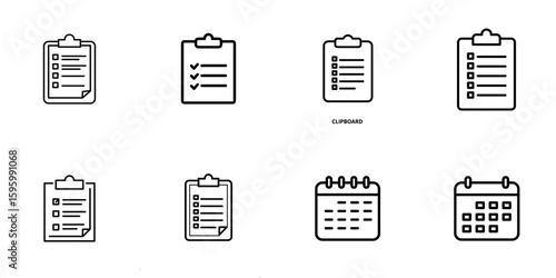 SVG set of cut-out clipboard, checklist, and calendar icons