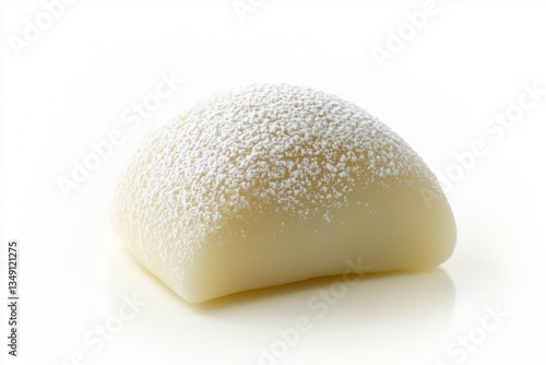 Sweet japanese mochi confection covered in white powdered sugar on plain background in studio shot