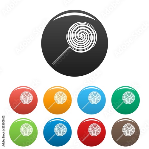 Sweet stick lollipop icons set 9 color vector isolated on white for any design