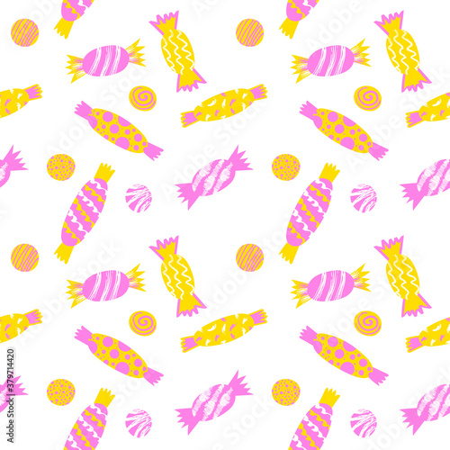 Sweets pattern for fabric design. Cute seamless background. White background. Textile ornament.