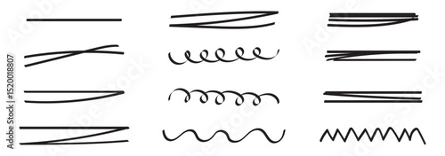 Swift crossed and wavy underlines. Underline markers collection. Vector illustration of scribble lines isolated on white background. Realistic Rough Black, Red and yellow Marker Brush Ink. Eps 10
