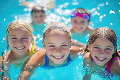Swim Lesson for Children: Group Swimming Instruction with a Focus on Kicking Technique