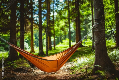 Swinging Hammock in The Forest. Generative AI