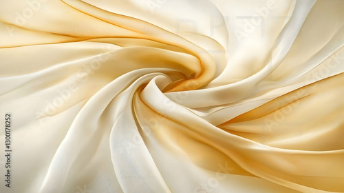 Swirling Beige and Gold Silk Fabric Texture, Studio Shot, Draped, Soft Lighting, Design Background