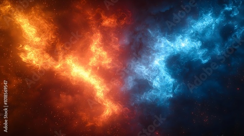 Swirling Clouds of Smoke, Divided Into Contrasting Red and Blue Hues Pattern Texture for Background, for Work or Design, High Resolution Wallpaper or Background