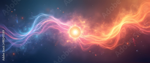 Swirling colors and forms representing the energy flow of Reiki symbols, Abstract cosmic energy waves in a starlit space background