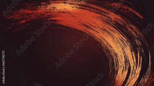 Swirling fiery brushstrokes radiate against a dark backdrop creating a dynamic texture