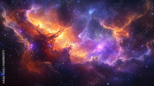 Swirling Nebula Clouds and Star Clusters Illuminated by Interstellar Light – A Mesmerizing Cosmic Landscape Perfect for Science Fiction Covers, Space Art, or Astronomy-Inspired Creations