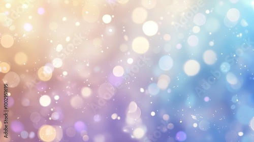 Swirling particles create dreamy bokeh on colorful background, perfect for holiday or winter designs. Soft pastel colors add festive touch with romantic sparkle