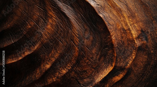 swirling patterns in walnut wood, showcasing its rich brown color and unique texture. The focus is on capturing details like rings or lines that give it an organic feel