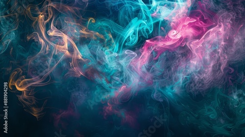 Swirling smoke-like tendrils with Holi colors in abstract background