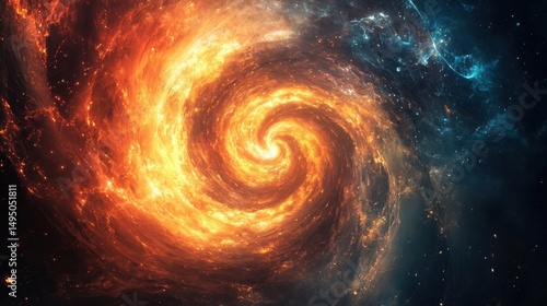 Swirling vortex of fiery and cosmic colors in a mesmerizing display of light and energy