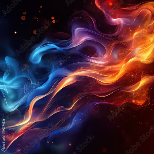 Swirling waves of blue and orange hues create a vibrant and dynamic abstract background.