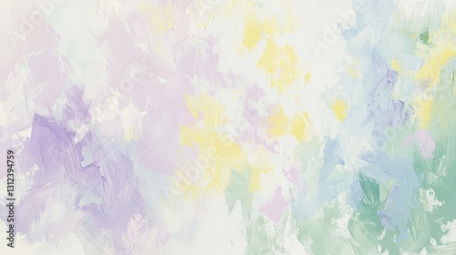 Swirls of soft pastel colors blend together to create an abstract piece, evoking a feeling of tranquility and calmness with hints of yellow, purple, and green throughout