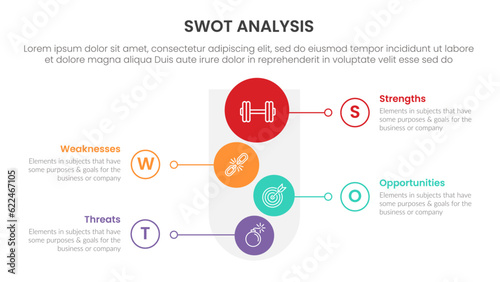 swot analysis concept with for infographic template banner with big circle on funnel glass four point list information vector