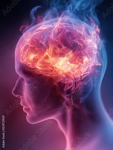Symbol of an Overheated Brain Glowing Inside a Head With Soft Gradients, Representing Mental Strain and Stress During a Creative Process