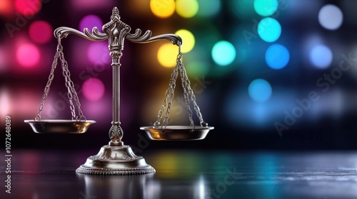 Symbolic balance for human rights day celebration amidst vibrant chaos