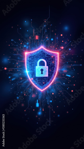 Symbolic representation of digital security with a lock icon and cybernetic background.