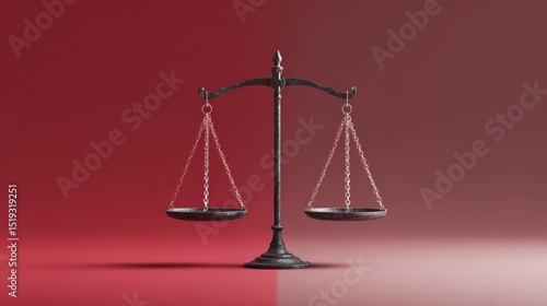 Symbolic Representation of Justice with Scales on a Red and White Background