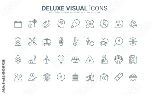 Symbols of industry supply to care for and save nature, alternative sustainable resources thin black and red outline vector illustration. Energy, power and electricity production line icons set