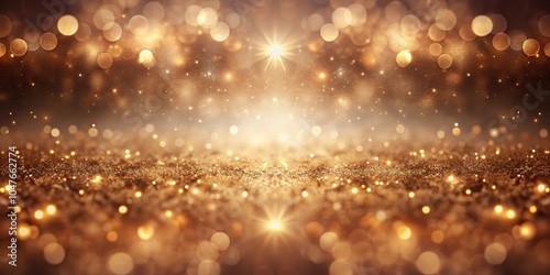 Symmetrical abstract blurry brown lights and shiny sand crystal bokeh background