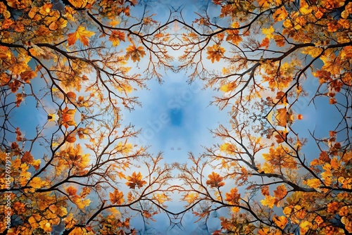 Symmetrical autumn branches looking up