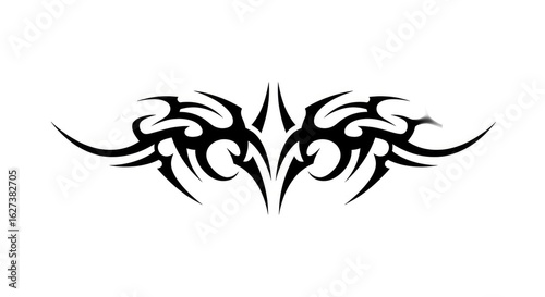 Symmetrical Black Tribal Tattoo Design with Sharp Flame-Like Elements
