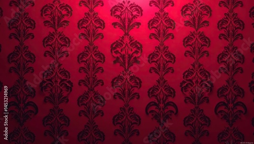Symmetrical damask pattern with swirling acanthus leaves in deep burgundy , symmetrical, illustration