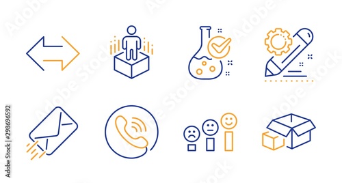 Sync, Augmented reality and Customer satisfaction line icons set. E-mail, Chemistry lab and Call center signs. Project edit, Packing boxes symbols. Synchronize, Virtual reality. Line sync icon. Vector