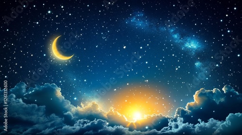 Synthetic star field. Solar system sky. Cosmo and Moon. Illustrative representation. Beautiful and mesmerizing space galaxy background with moon.