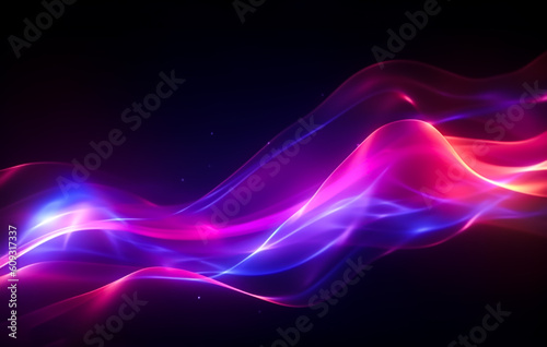 Synthwave style high-speed neon waves and bokeh lighting . Futuristic wallpaper, symbolizing data of information age transfer in a visually captivating design. Illustrative Generative AI.