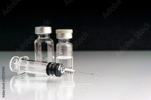 Syringe and vials closeup with selective focus and crop fragment. Medical and Healthcare Concept