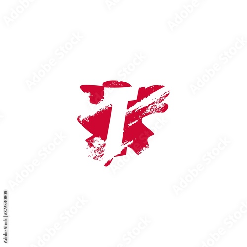 T Letter Splatter Negative Space logo Icon. Hidden space letter on splash shape design.