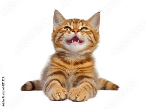 Tabby cat with happy expression and opened his mouth, Generative AI