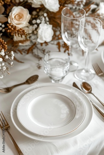 Table place setting blank menu card mockup or reserve in wedding invite and special event, restaurant