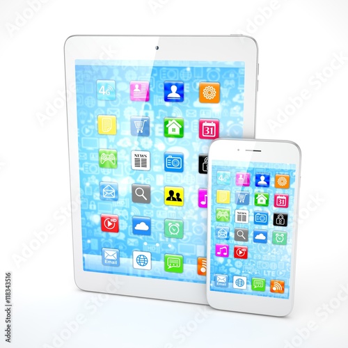 Tablet and smartphone on a white. 3d rendering.