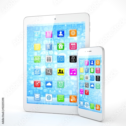 Tablet and smartphone on a white. 3d rendering.
