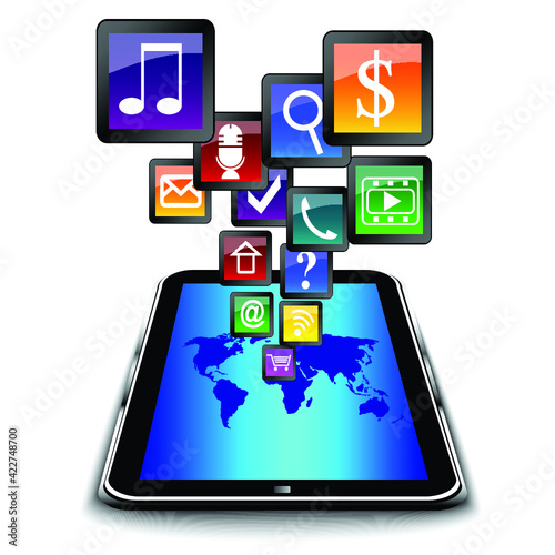 Tablet with Internet and Website icons Set isolated
