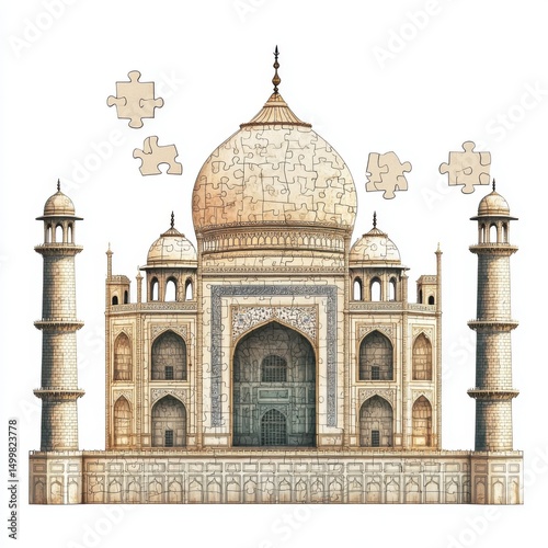 Taj mahal puzzle isolated on transparent background