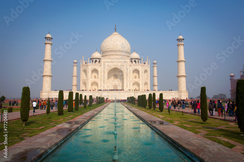 Taj-Mahal mausoleum with reflection in water. Agra, India
